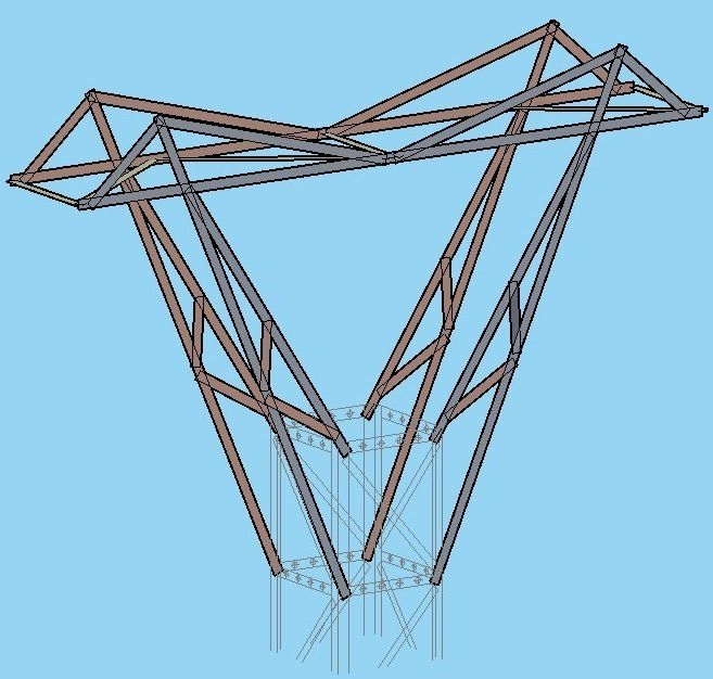 La cabeza será electrosoldada y el fuste será suministrado en barras sueltas no superiores a 6500 mm. Ambas partes será formada por montantes de angulares de alas iguales unidos entre sí por una celosía sencilla soldada con una dimensión mínima de 4200 mm para la cabeza. Esta cabeza puede alargarse 600 mm, 1200 mm o 1800 mm según necesidad de cliente o extenderse en tramos de 1200 mm según algunas compañías distribuidoras. Estas extensiones, no están contempladas en la norma UNE 207017:2010 aunque en nuestro catálogo podrá verificar como afecta a la estructura el acople o recrecimiento de la cabeza.
